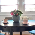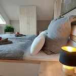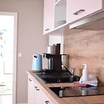 The apartment is equipped with a mini-kitchen, complete with an electric kettle, a refrigerator, and kitchenware. The 55 m^2 apartment is merely 55 km from Berlin Brandenburg airport.